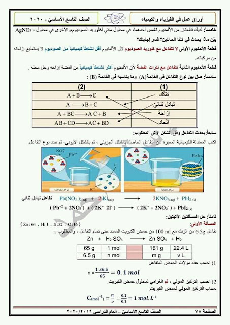 أوراق عمل في الفيزياء والكيمياء للصف التاسع في مادة الفيزياء والكيمياء من الفصل الدراسي الثاني للعام الدراسي 2019/2020م.