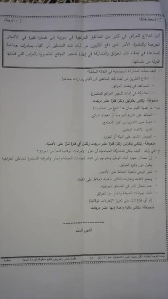 سلم تصحيح امتحان التربية الوطنية للصف التاسع :