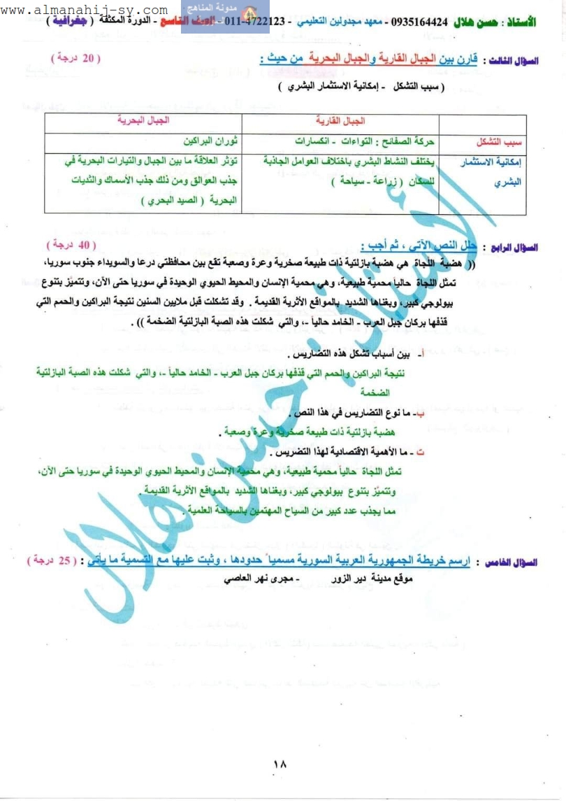 يمكنك تحميل نسخة PDF من نماذج امتحانية في الجغرافية (اول اربع وحدات) للصف التاسع من الرابط التالي علي مدونة المناهج السورية